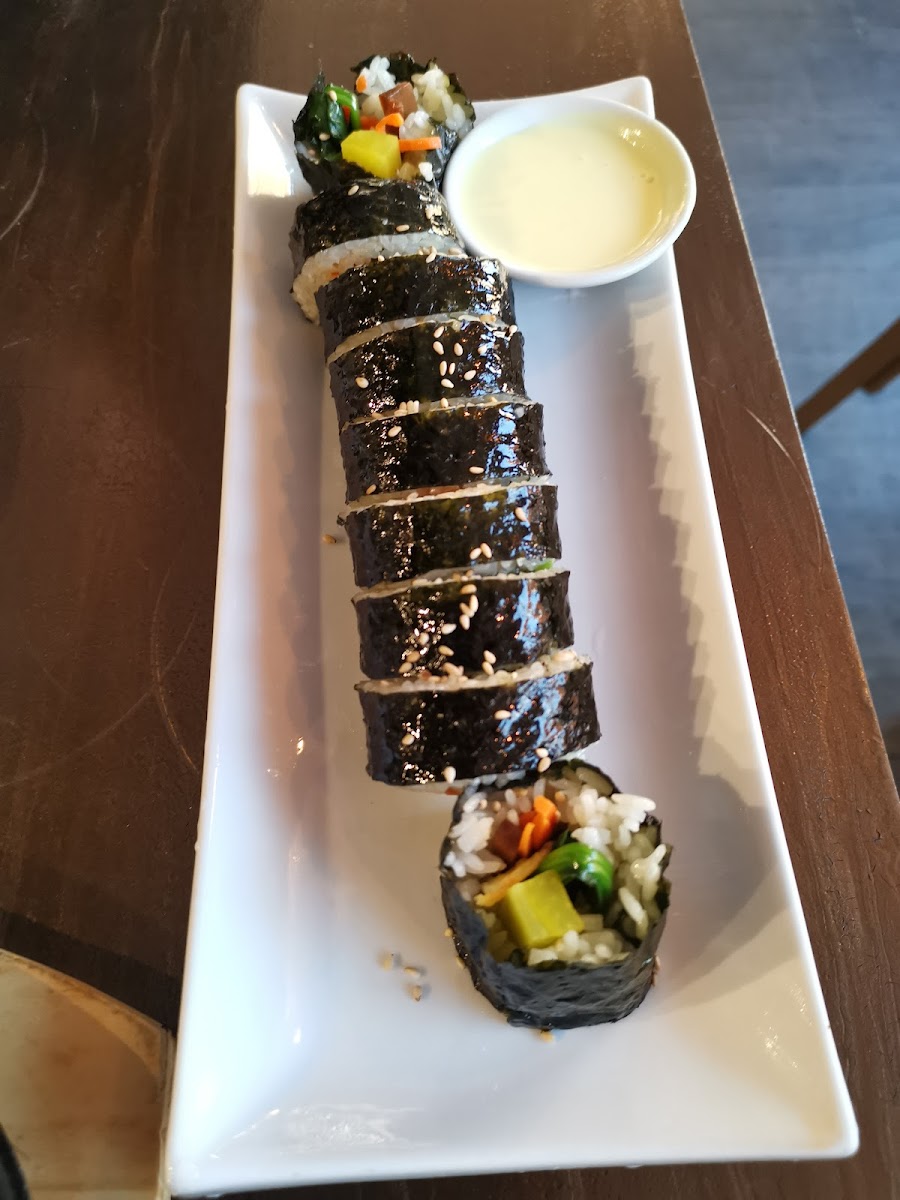 Their Korean Fried Chicken, especially the versions with soy garlic and green onion sauces, stands out for staying crispy throughout the meal—a quality that often challenges many Korean fried chicken spots. Alongside that, the menu features familiar dishes like bibimbap, spicy pork rice bowls, and seafood pancakes, which are prepared with care and a clean flavor profile. For those who like variety, sharing a few small plates like crispy seaweed rolls or tteokbokki with cheese can round out the meal nicely.